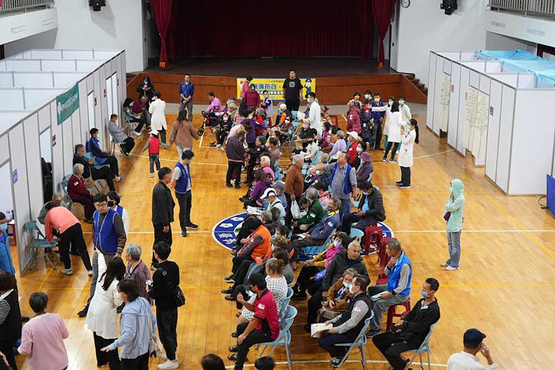 歲末送暖,臺中榮總以最溫暖的義診行動迎向年終時節!臺中榮總11月29日攜手苗栗縣衛生局於西湖鄉立體育館辦理「愛在客庄」義診,由傅雲慶院長領軍醫護藥及遠距醫療團隊,動員約80人在異地迅速從零開始完成臨時醫療站的建置,提供8專科、4檢查的專業醫療服務,同時維護病人隱私、提供友善看診空間,以及診間開藥、藥局領藥的完整數位連線,確保用藥安全,就醫流程如同到醫院一樣,提供西湖鄉及周邊鄉鎮居民看診。顯現臺中榮總在面對任何狀況下,可應變不同地域搭建醫療院所,維持運作、即時反應且持續提供醫療服務之能力。