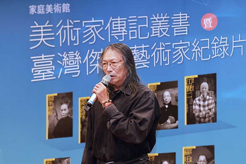 藝術家 洪根深 代表「家庭美術館—美術家傳記叢書」傳主致詞。