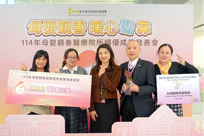 台中慈濟醫院96年啟業即成立團隊並認證母嬰親善醫院,111年成功認證為全臺首家國際愛嬰醫院,114年再次通過國際認證也是全臺唯一。李敏駿主任強調,台中慈濟醫院持續拓展母嬰親善服務的「未來性、推廣性、重要性」,將成功模式推廣出去,確立從懷孕、出生、到兩歲的母嬰照護支持系統。