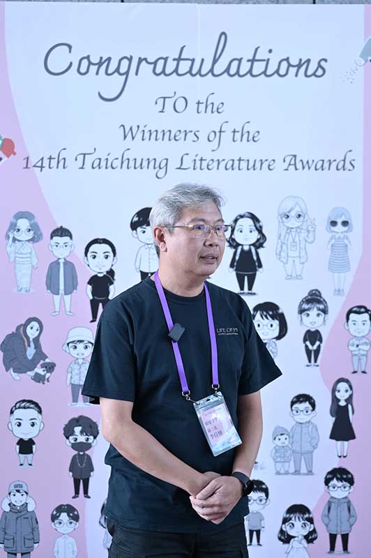 今年典禮首次邀請作家陳栢青與吳曉樂擔任雙主持人,兩位作家以自身創作經驗切入,不僅深入訪問得獎者的寫作歷程,也以幽默風趣的舞台節奏,營造創作者間的對話氛圍。他們將九大文類巧妙比喻為不同菜餚——有的如慢燉湯頭、層次深厚;有的如清蒸細緻、溫潤純粹;有的如涼拌小菜、清爽靈動且耐人尋味——藉此呈現臺中文學的多樣風貌與細膩特色。明亮溫馨的頒獎典禮現場,搭配逗趣活潑的似顏繪打卡牆,受到得獎者喜愛,紛紛提筆簽名留念。
