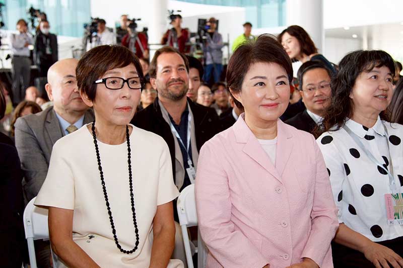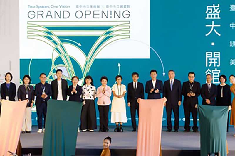 台中文化新地標「台中綠美圖」今(13)日正式開館!台中市長盧秀燕率市府團隊,文化部政務次長李靜慧、日本 SANAA 事務所建築師妹島和世與西澤立衛,以及國內外藝文、建築等各界貴賓齊聚一堂,共啟台中文化嶄新的篇章。典禮以「雙館共啟.八方併綻」為主題,象徵市立美術館與市立圖書館共同揭幕、雙館能量向外綻放,以開放與融合的精神引領台中邁向國際舞台。盧市長指出,「台中綠美圖」猶如城市新名片,將帶領台中文化城邁向下一個里程碑。