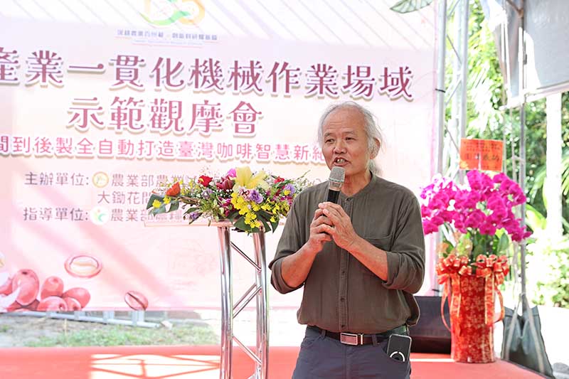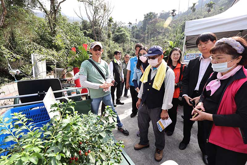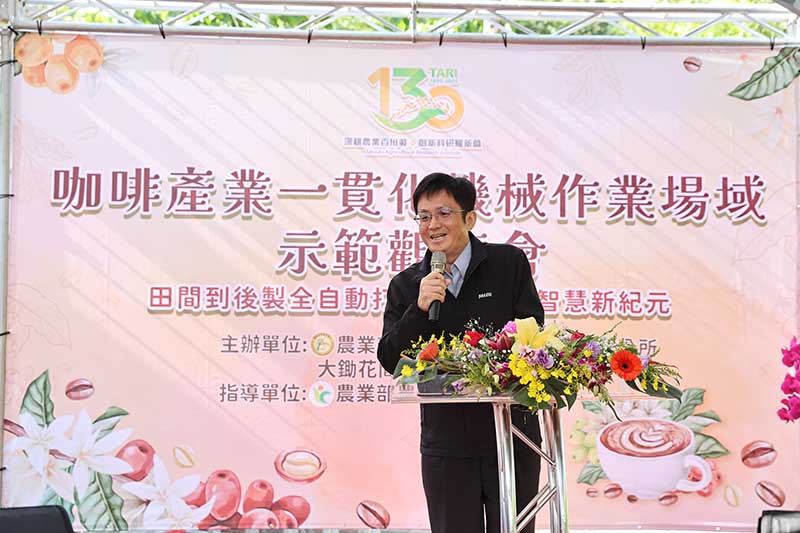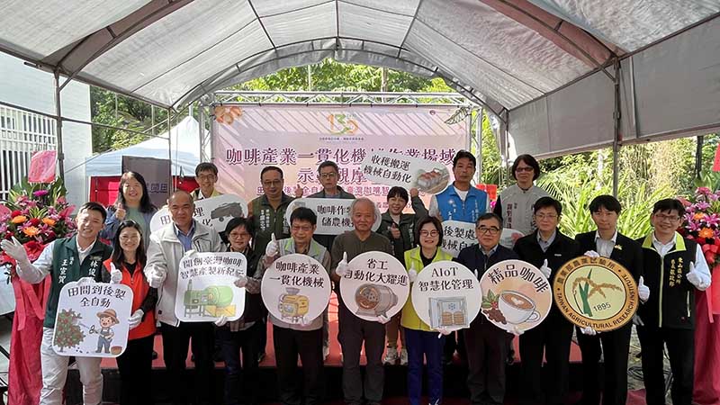 臺灣咖啡近年在國內外評比屢獲佳績,品質深受消費者肯定,但產業仍面臨小農規模分散、缺工日益嚴峻及後製處理量能不足等瓶頸,難以形成穩定批次供應量,進入大型通路市場。為推動臺灣咖啡產業邁向現代化、標準化與國際化,農業試驗所嘉義農業試驗分所與農糧署合作,於大鋤花間咖啡生態農場建立咖啡產業一貫化機械示範場域,並於今(15)日辦理「咖啡產業一貫化機械作業場域示範觀摩會」,首次整合展示田間管理、採收、搬運到後製加工的全流程智慧化機具,為臺灣咖啡生產開啟全新紀元。