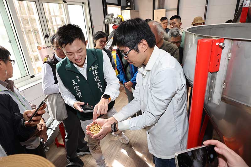 農業試驗所指出,在後製端,傳統咖啡果實處理從分級、去皮、發酵、去果膠到乾燥,全程高度依賴人工,不僅耗時長,也因果實成熟度不一而常出現破豆與品質不均問題,限制批次量能與通路供應。現場示範的一貫化全自動後製設備,可成功突破此瓶頸:「自動浮選與預篩選機」具環省水系統,可迅速去除瑕疵果及異物;「新型省水去皮分選機」每小時可處理高達1,000公斤漿果,並可自動分選紅果與未熟果,有效避免混批造成的品質損耗。「高效率果膠清洗機」處理每公斤生豆僅需0.04公升用水,比傳統人工清洗節省9成以上水量與人力;「滾筒式恆溫烘乾設備」批次處理容量可達900公升,並能利用咖啡殼、枝條作為燃料,提高能源效率且更具環保價值。透過這套全自動一貫化流程,咖啡採後處理時間由傳統約需14天縮短至僅2天即可完成,達成每批500~1,000公斤的商業化供應量,不僅提升品質穩定性,也強化國產咖啡進入連鎖通路的能力,進一步提高市場競爭力與農民收益。