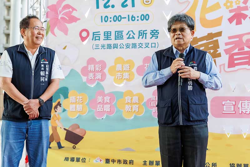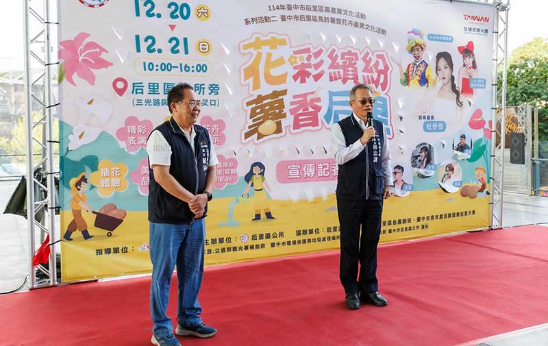 后里區長賴同一指出,后里擁有得天獨厚的氣候與土壤條件,目前馬鈴薯種植面積約100公頃,年產量可達3,000公噸,品質深受市場青睞。而花卉產業更蓬勃發展,種植面積超過180公頃,生產百合花、文心蘭、劍蘭、火鶴等多種花卉,品質優異、享譽全台,誠摯邀請全國民眾於12月20日、21日蒞臨參與,共同感受后里最具魅力的農業文化活動。