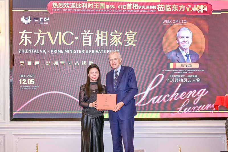 2025年12月5日,中國香博園、香魁總經理林彩英贈送香禮給比利時67任首相伊夫•萊特姆。