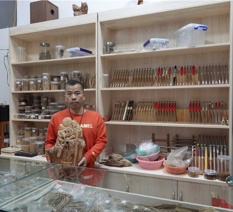 木易晟由木雕師黃文斌創辦,長期從事手工藝並進入沉香領域,產品以東南亞產區材料與線香、佛珠等為主,面向國內市場。這類小型手工企業與大型產業平臺共同存在,構成福建香產業的真實生態:既有規模化與標準化的推進,也保留了“手上功夫”的細密、專注與審美。