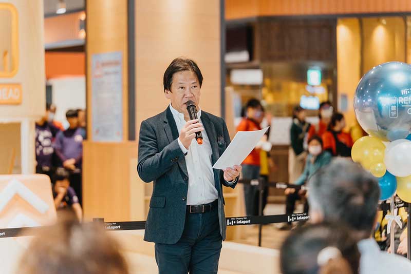 台灣三井不動產 久一康洋董事長致詞時表示:「本次改裝是在LaLaport台中開業滿三年之後,回應顧客所提供的寶貴意見,以引進貼近日常生活所需的品牌為主要目標,設施也全新打造了可讓親子同樂的免費遊具區「LaLa LAND」。同時,在歲末之際,能夠與公益團體攜手合作舉辦記者會,我們也感到非常榮幸與開心。」