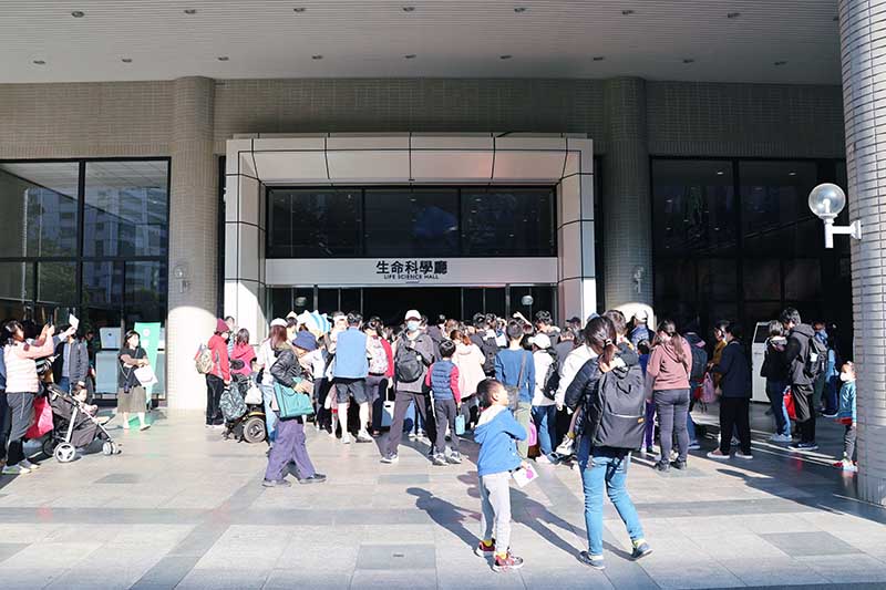 歡慶科博館40週年生日快樂,今日本館及三園區皆免費開放,現場觀眾在開館後紛紛進館參觀,場面十分熱鬧。圖片提供/國立自然科學博物館