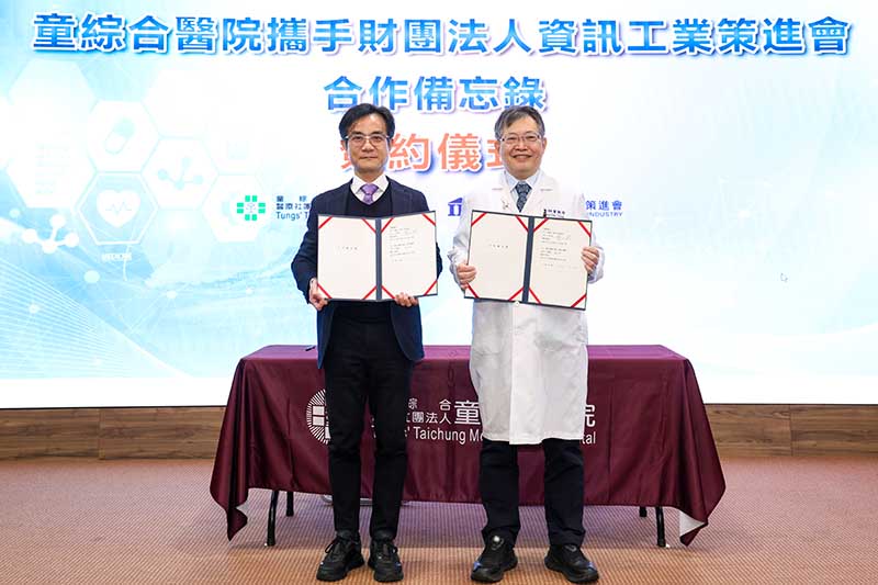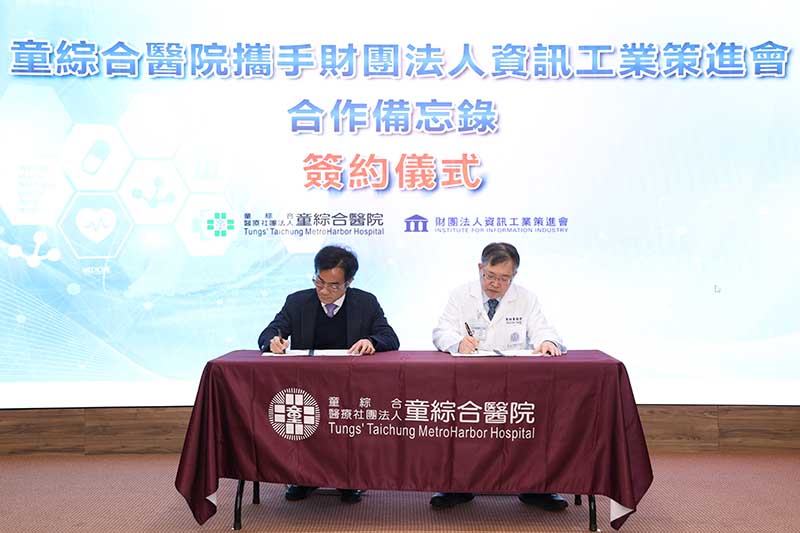 童綜合醫院今(5)日宣布與資策會正式簽署合作備忘錄(MOU)右為童綜合醫院 童敏哲董事長 左為資策會 黃仲銘董事長