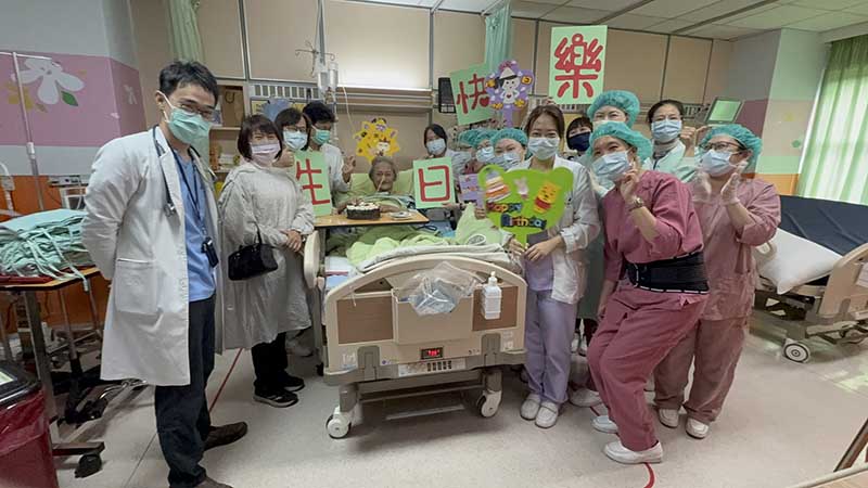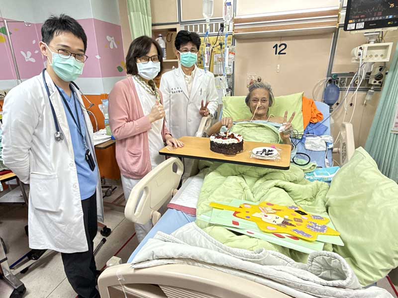 陳先生去年六月底因胰臟炎合併十二指腸穿孔休克被送醫,歷經多次清創手術,進出加護病房治療超過6個月,在臺中醫院重症整合治療團隊協力照顧下,病況終於穩定,醫護人員特別與家人選在他今天生日幫他慶生,陳先生感動的落淚,切下蛋糕開心許願「我要健康出院回家!」