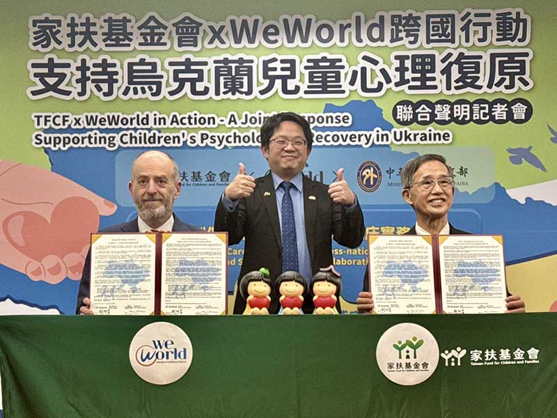 俄烏戰爭即將邁入第五個年頭,戰火持續威脅兒童的生存與發展權利。外交部為援助戰火中失依的烏克蘭兒童,戮力促成家扶基金會(TFCF)與國際人道援助組織WeWorld展開為期三年的「重建童年:基輔地區弱勢孩童綜合支持計畫」,透過建構基輔地區的綜合支持體系,成為國際人道救援的關鍵整合樞紐。今(8)日家扶與WeWorld發布聯合聲明,重申在長期危機中捍衛兒童身心安全與尊嚴的堅定承諾,宣示將投入專業資源,以實質行動為戰火下的失依兒童重建希望。