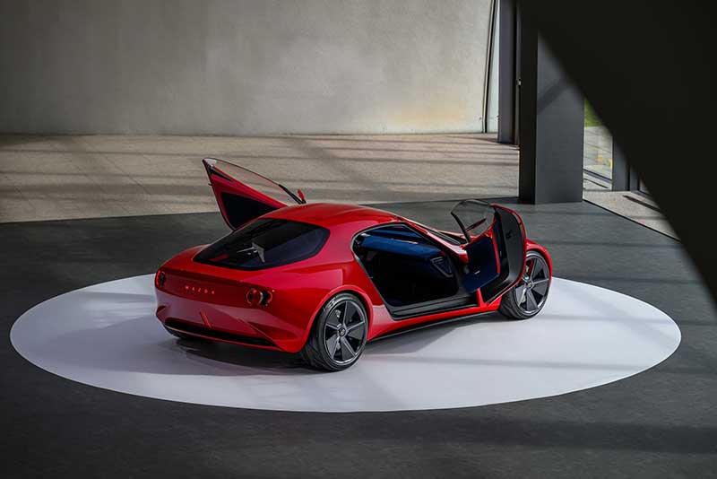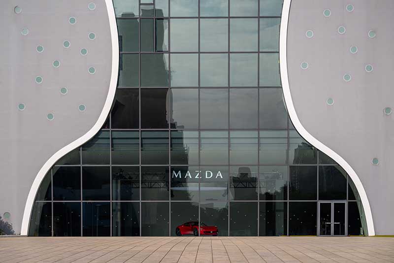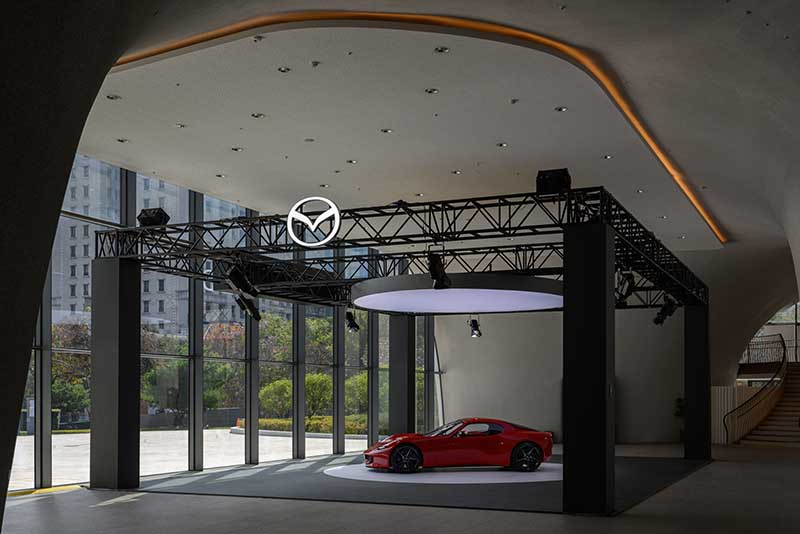 臺中國家歌劇院以挑戰世界建造難度之最的結構奇蹟,確立了其難以企及的地位。由伊東豊雄大師親手擘劃,以無樑柱曲牆工法打破建築內外界線,透過仿生呼吸孔讓光影在空間中自由流動,同時結合輻射傳導冷卻地板的節能智慧空調設計,體現與自然共生的理念。這份對光影流動與永續願景的追求,恰與 MAZDA ICONIC SP 概念跑車形成完美呼應——歷經 27 層塗層工藝打造的「紫羅蘭紅」專屬車色,在歌劇院流動的光影映照下,演繹出深邃且多變的視覺層次;而車輛採用的多元環保能源轉子發電技術與使用複合再生材質的座艙,則與歌劇院的節能設計理念不謀而合,譜寫出人與自然和諧共生的未來篇章。