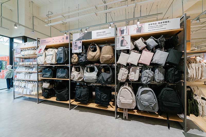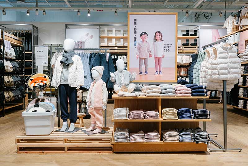 門市導入完整的商品組合,涵蓋男女服飾、童裝、洗沐保養、家具家用、食品飲料與文具用品等多元品項