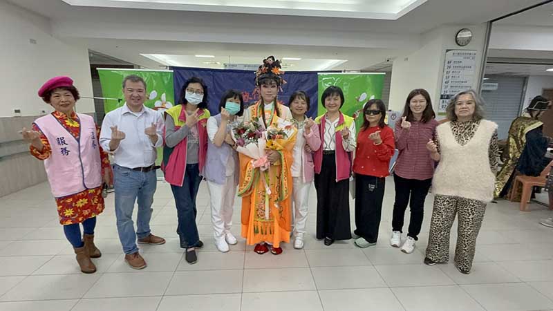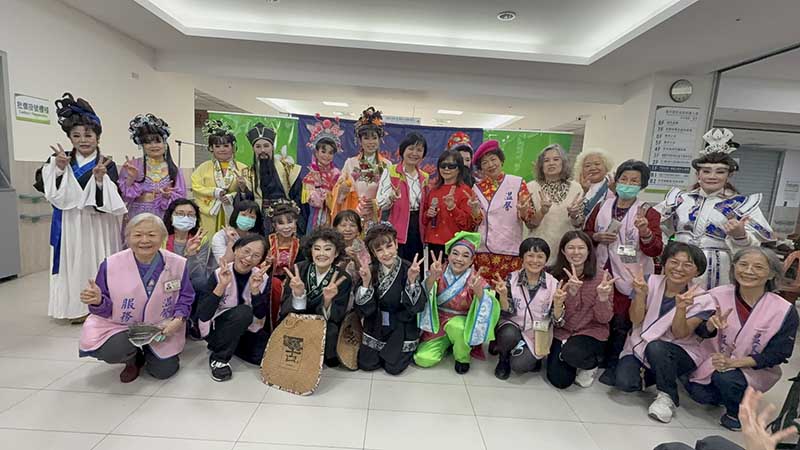 衛生福利部臺中醫院護理之家今(17)天特別邀請知名「小金枝歌仔戲團」指導的人間大學歌仔戲社團,到醫院公益演出改編的經典歌仔戲劇碼「回窯笑傳」,廖妙淯副院長、護理科徐瑪玲主任也陪大家重溫兒時歌仔戲棚下看戲的回憶,並提前跟大家賀年,祝福大家新年快樂。