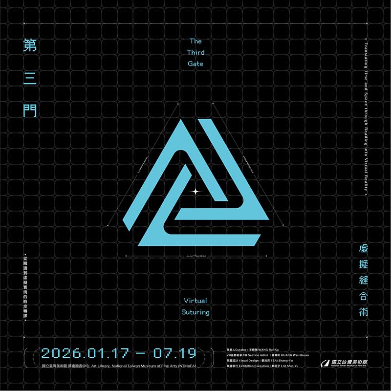 國立臺灣美術館藝術圖書中心即日起至7月19日,隆重推出全新跨界展覽《第三門:虛擬縫合術》(The Third Gate-Virtual Suturing) 。本展由策展人王叡栩策劃 ,聯合虛擬實境(VR)藝術家黃偉軒與視覺設計師蔡尚育 ,共同打造一場結合閱讀、科技與時空轉譯的深度感官體驗。