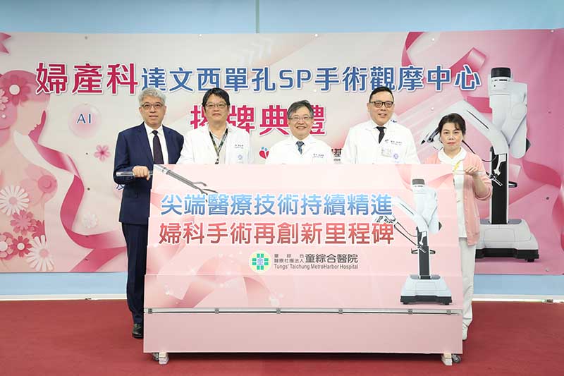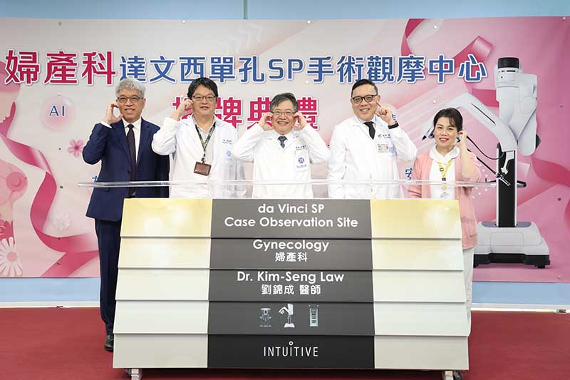 因為不斷學習交流各項尖端醫療技術,在持續創新下提供患者最優質的醫療服務,婦產部劉錦成主任成為婦產科Xi 指導老師後,也於2025年12月也取得「婦產科達文西單孔SP手術觀摩中心」指導老師,成為全國首位擁有雙重指導資格的婦產科醫師,截至一月份進行的達文西單孔手術個案數,童醫院的婦產科手術量已達142例,婦產科單孔SP 總手術執行數量居2025年全國首位且己成功執行各項不同婦科術式。今日(1/20)舉辦「婦科達文西單孔SP手術觀摩中心揭牌典禮」,不僅童綜合醫院醫療團隊到場見證外,直覺公司楊繼盛副總裁暨總經理等貴賓也共襄盛舉,更邀請了患者現身進行疾病與接受單孔SP治療的分享,希望讓更多擁有同樣困擾的女性朋友都能獲得最好的治療成果。