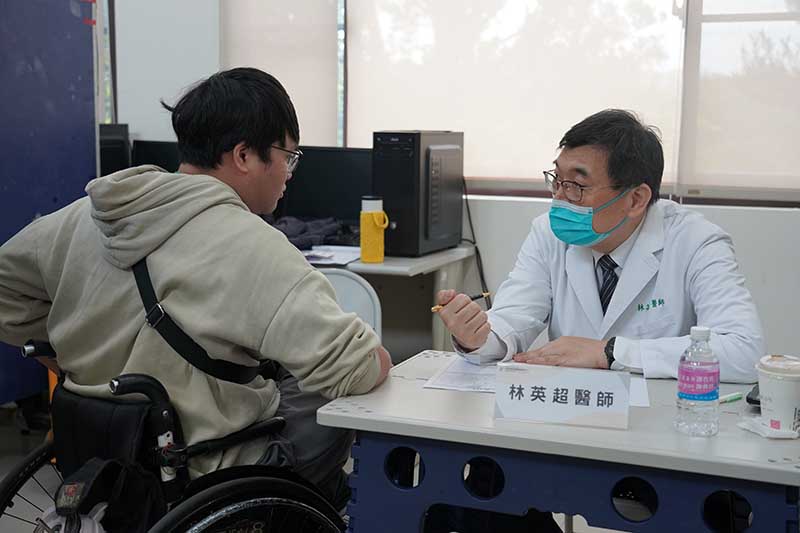 林英超主任臨床觀察發現,許多傷友長期受困於神經性疼痛與肌肉張力異常,雙腳常會不由自主地抽動或緊縮,這些不僅是生理上的折磨,更是心理上的重擔。他坦言,在醫院繁忙的門診中,醫師受限於看診節奏,往往難以詳盡解答傷友在居家照護面臨的疑難雜症;但在義診現場,醫師有較充裕的時間與傷友針對神經修復、幹細胞治療的最新臨床進展,或是個人化的疼痛控制方案進行深度討論。透過更零距離的傾聽,醫療團隊能精準掌握傷友的復健進度,這種面對面的互動,正是義診服務不可取代的臨床價值,也讓醫療服務能真正走入傷友的心靈深處。