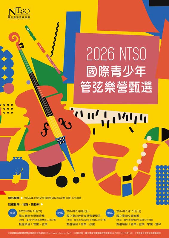 2026 NTSO國際青少年管弦樂營熱烈報名中,甄選報名至2月10日截止。