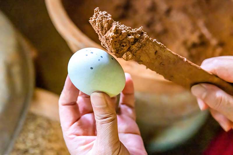 鹹鴨蛋是怎麼來的?鴨蛋教室教你辨別蛋、動手做鹹鴨蛋及青草皮蛋,邊玩邊學超有趣。(照片為台南市台南鴨莊休閒農場)
