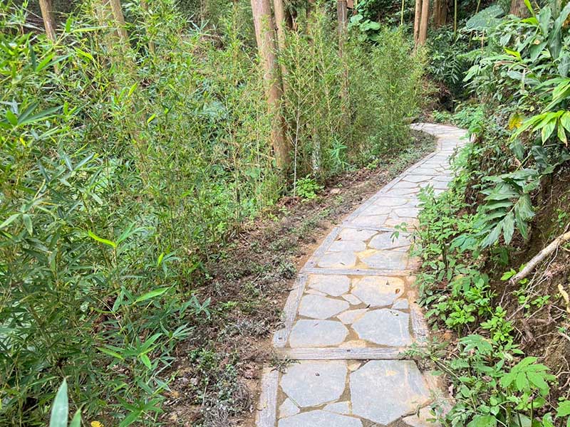 此外,步道亦依循地貌條件,配置石板階梯、觀景平台、繩索欄杆及止滑導引設施,營造更友善的步行空間,提供遊客踏青及社區導覽學習一條安全、舒適又好行的共學體驗動線,充分體現「以少為多、以簡為優」的永續智慧。
