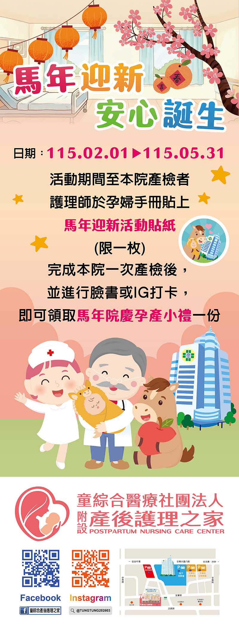 童綜合醫院0201至0531舉辦「馬年迎新・安心誕生」活動
