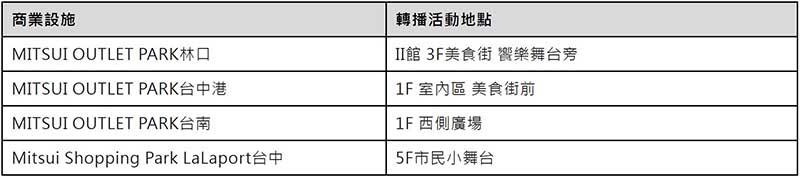 *詳細轉播之賽程,請依各設施官網與粉絲專頁公告為準。