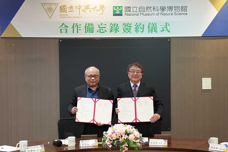 興大校長詹富智(右)、科博館館長黃文山(左)代表簽約