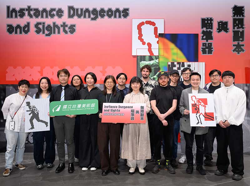 「無限副本與瞄準器」,今(28)日隆重開幕,文化部政務次長李靜慧、國立臺灣美術館長陳貺怡、策展人陳湘汶、參展藝術家等出席開幕式。現場特別邀請新媒體藝術團隊XTRUX與藝術創作者黃詠仁合作表演〈Boulder石〉,作品以遊戲引擎為基礎,結合即時影像生成與聲音演出,在虛擬場景中呈現NPC角色不斷推動巨石的循環行動,以「薛西佛斯式的苦行」隱喻人在技術系統與勞動結構中的反覆處境。