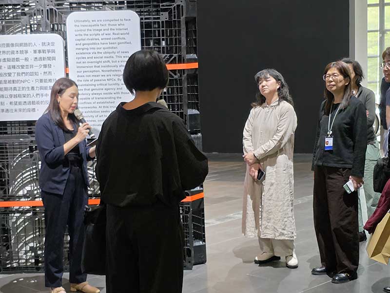 策展人陳湘汶表示,手機內的影像早已被當作真實,滲入我們的集體記憶,人們身處在一個真實與虛擬界線幾乎坍塌的世界,能夠掌握網絡與影像的人,也在某種程度上掌握了書寫世界敘事的權力。網路上常有人用「NPC」(非玩家角色)來開玩笑,形容自己像遊戲中的背景角色,不斷重複既定動作,只是為了讓遊戲運作,這其實點出了當下的處境「人們是否在不知不覺中,被某種巨大而無形的系統所設定?」透過本展可看到許多嚴肅的現實,越來越像我們熟悉的遊戲介面。陳湘汶提醒,「無論系統多麼龐大,我們都不應被簡化為可以替換的數據。科技是一種重要的透鏡,幫助我們看見世界的細節,但同時我們也必須意識到,任何工具都可能帶有偏見,任何系統也都存在漏洞。當我們開始理解這些影像與數位機制如何運作時,其實也等於重新取回主導權。我們不再只是被設定好的角色,而是能在高速運轉的科技社會中,保有作為人的能動性。」